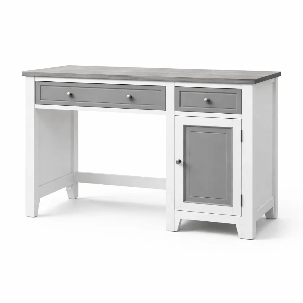 Bureau en bois MDF blanc et gris avec tiroirs et armoire 120 x 60 x 75 cm