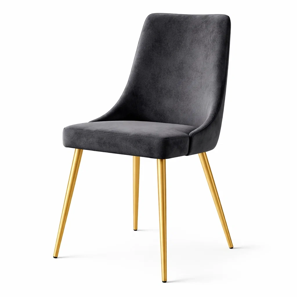 Chaise de salle à manger en velours avec pieds en métal doré