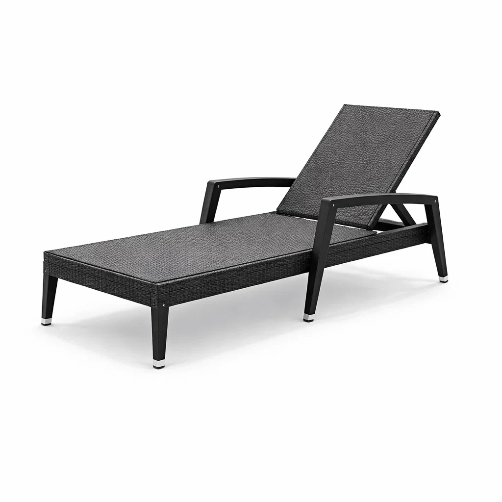 Chaise longue en aluminium et résine tressée noir